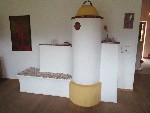 Öfen können aber auch künstlerisch gestaltet werden, den Formen sind keine Grenzen gesetzt. Auf Wunsch können die Öfen auch mit Lehm verputzt werden. Lehm sorgt für ein angenehmes Raumklima.
